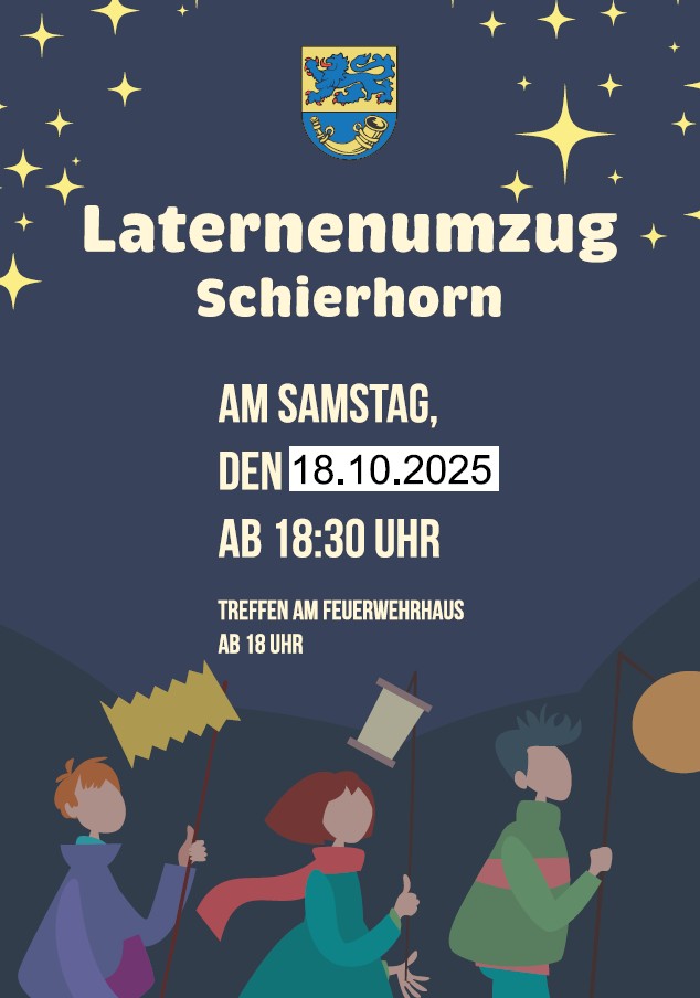 Am Samstag, den 18.10.2025 findet der jährliche Laternenumzug in Schierhorn statt. Wir treffen uns ab 18:00 Uhr am Feuerwehrhaus!